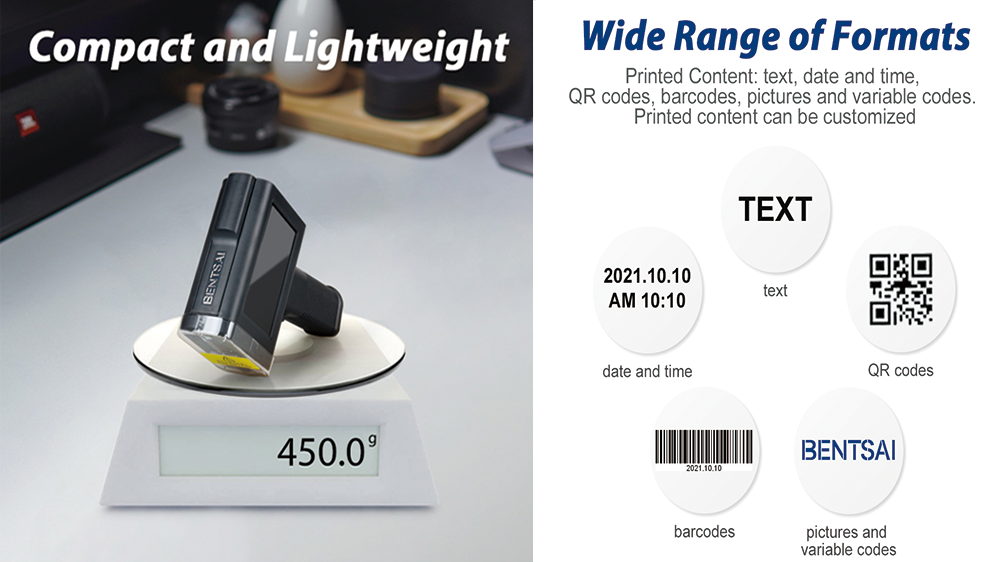 - Production Line Mode and Handheld Mode are switchable as you wish. Database imported & exported and Variable data printing.